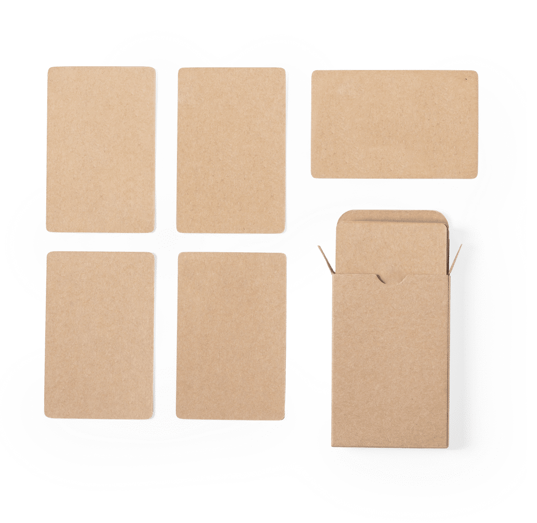 Baraja francesa de línea nature, fabricada en resistente cartón reciclado. Incluye 54 naipes, presentados en estuche individual de cartón reciclado.