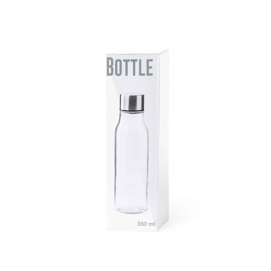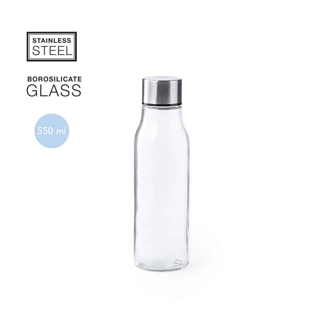 Bidón en alta calidad, de 550ml de capacidad. Fabricado en cristal de borosilicato, que ofrece una resistencia y durabilidad excepcionales, alargando su vida útil y pudiendo ser reutilizado infinidad de veces. Tapón en acero inox, libre de BPA. Presentado en atractiva caja de diseño.