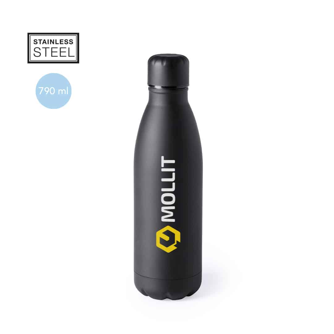 Bidón fabricado en acero inox de 790ml. Con tapón de seguridad de rosca. De original acabado mate completo en vivos y variados colores. Presentado en atractiva caja de diseño.