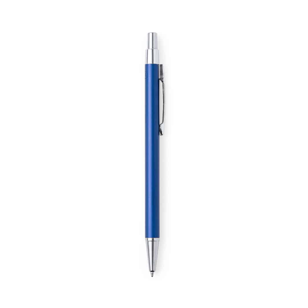 Bolígrafo eco-friendly fabricado en aluminio reciclado, cuyo origen se encuentra en la reutilización casi infinita de uno de los materiales con mayor potencial de reciclabilidad sin perder sus propiedades. Esta característica lo convierte en un material eco-friendly de origen reciclado, fácilmente reciclable y de cuyos procesos de tratamiento y desechos para la obtención del material se pueden obtener nuevos recursos reutilizables, consumiendo menos energía en su fabricación, entre otros factores de sostenibilidad. De mecanismo pulsador, con cuerpo disponible en variada gama de colores metalizados y accesorios en cromado. Con clip metálico, tinta azul y distintivo aluminio reciclado en la parte superior del bolígrafo. Certificación GRS (Global Recycled Standard / Estándar de Reciclaje Global), que garantiza el origen reciclado del material usado para fabricar el producto.