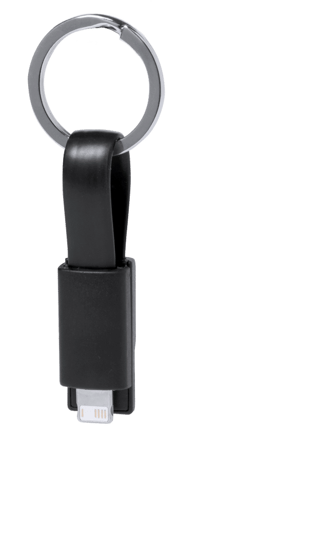 Cargador llavero USB en variada gama de vivos colores. Con conexión dual micro USB/lightning. Presentado en bolsa individual.