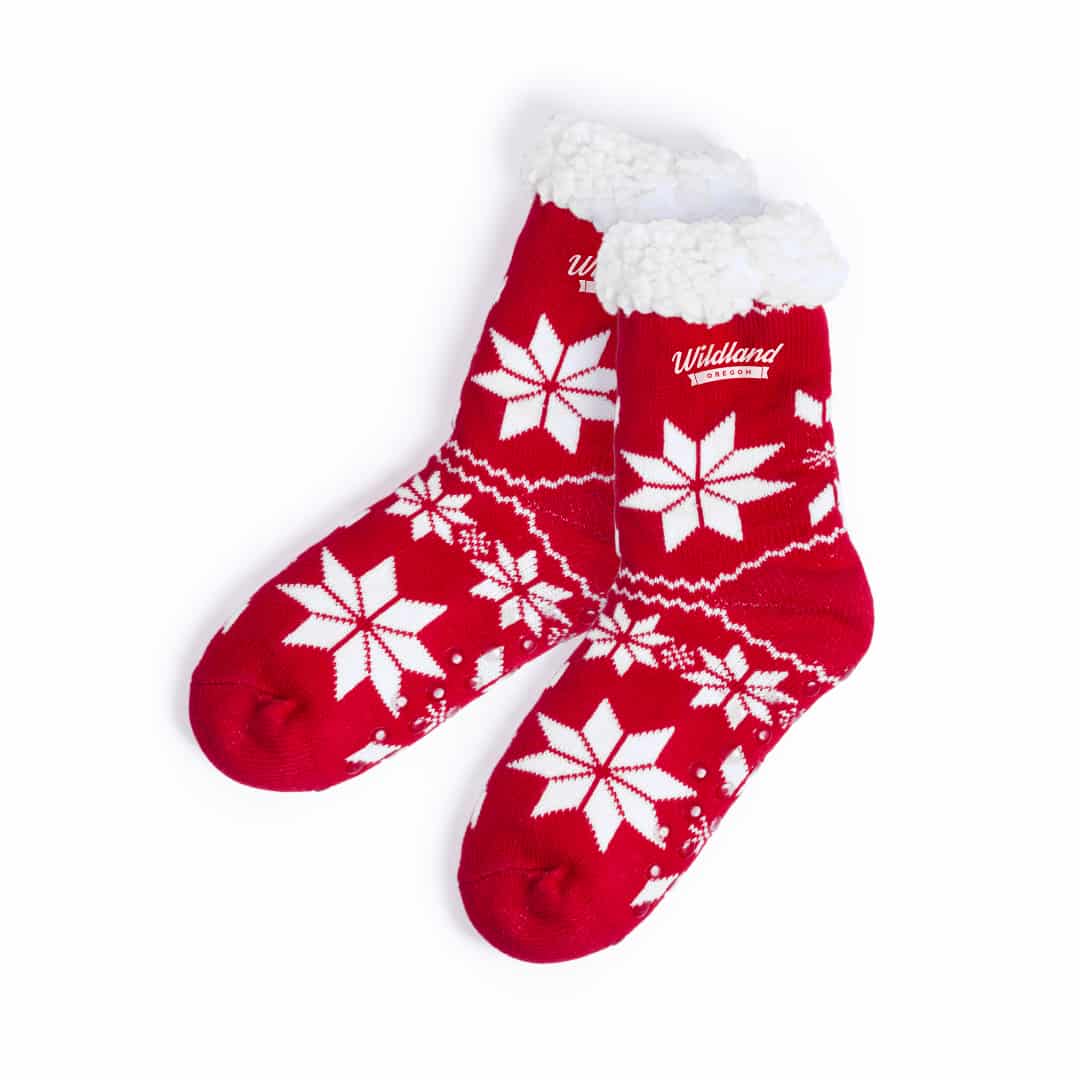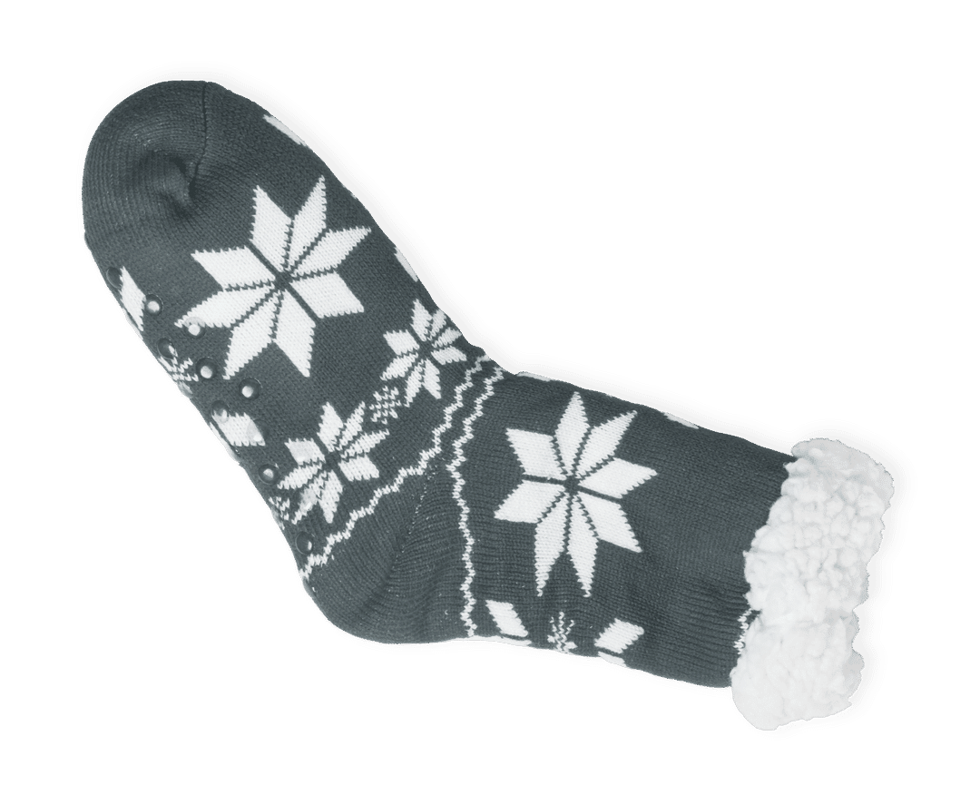 Par de calcetines anti deslizantes con motivos navideños, diseñados para andar por casa. De suave poliéster acrílico exterior y con cálido forro interior.