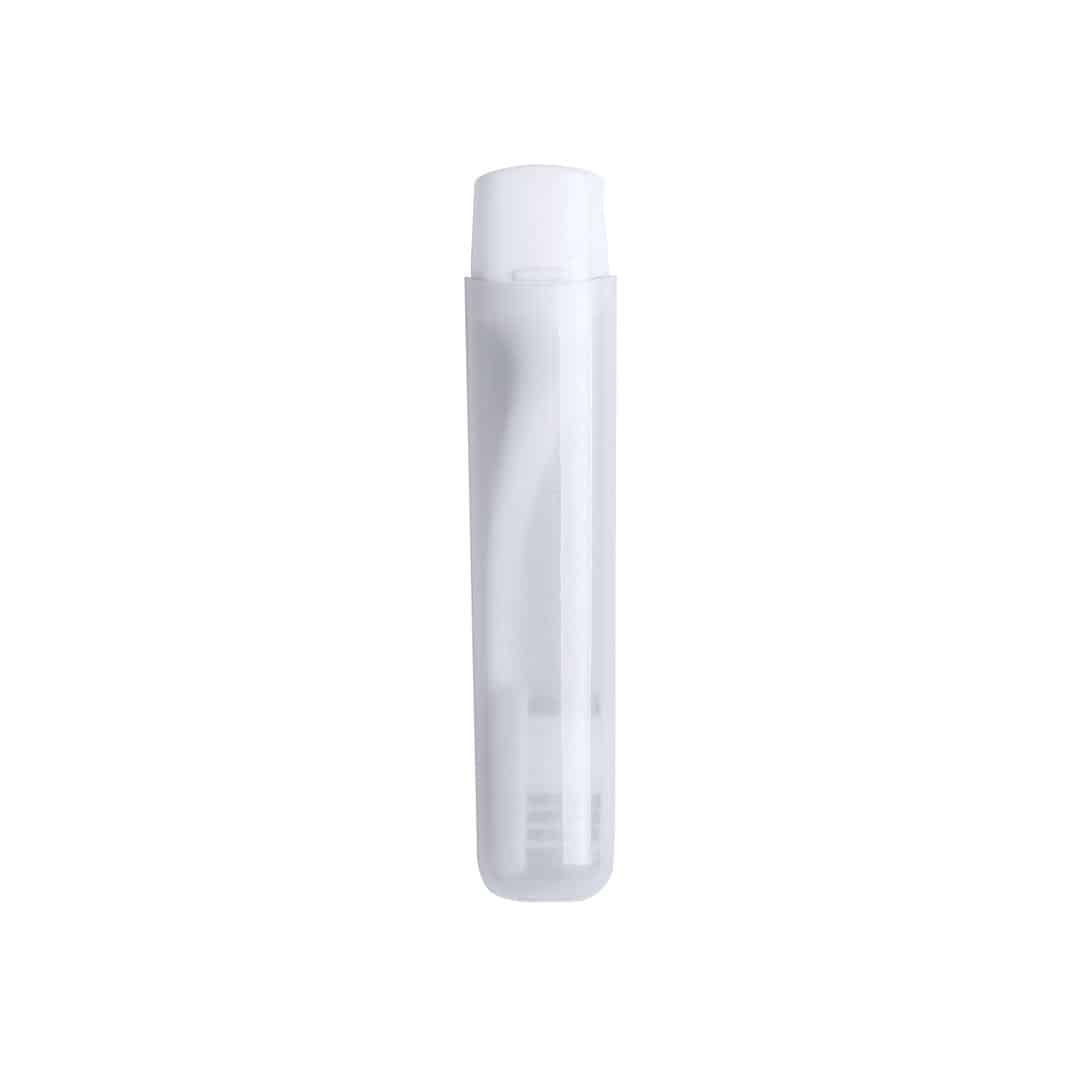 Cepillo de dientes plegable de suave tacto y llamativo diseño bicolor en amplia gama de colores.
