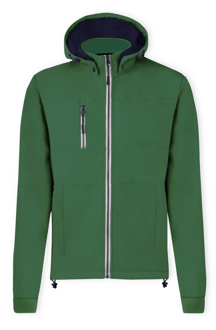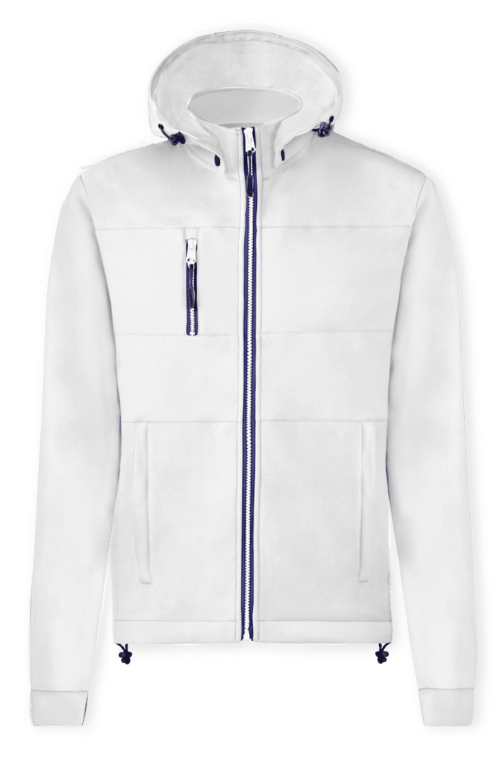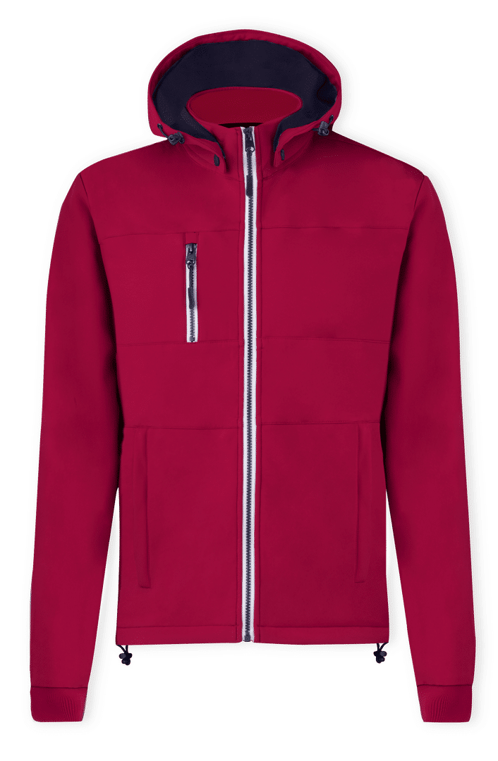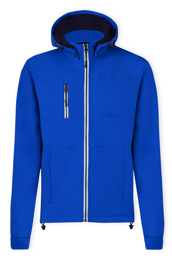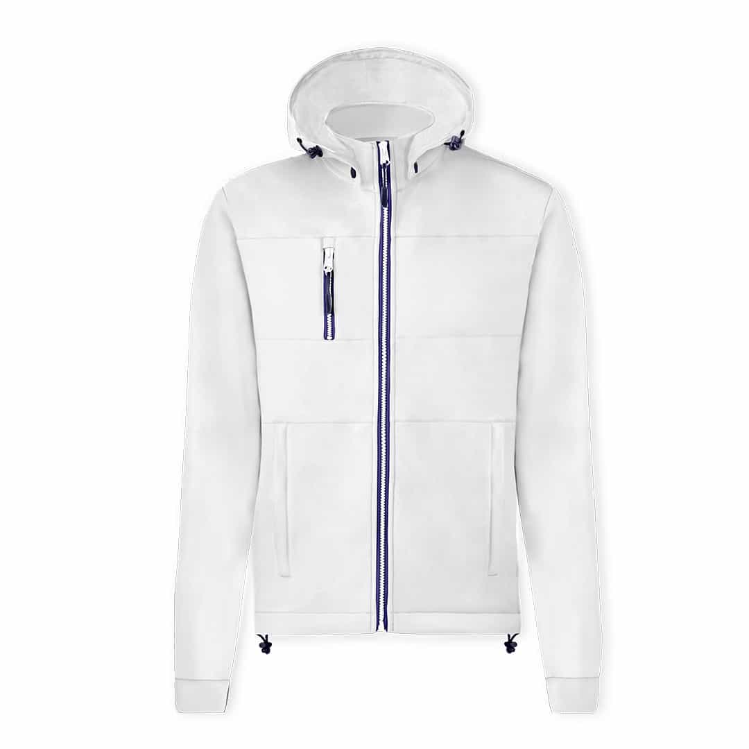 Chaqueta de resistente y transpirable material soft shell de 300g/m2. De corte moderno, con cremallera central, bolsillos laterales y práctico bolsillo en pecho con cierres de cremallera y tiradores en contraste. Cuello elevado con capucha ajustable y desmontable. Dobladillo inferior con cordón ajustable. Mangas con cómodos puños de punto en color a juego. Exterior en soft shell resistente al viento y al agua, e interior de cálido micropolar en color contraste. Disponible en tallas XS, S, M, L, XL, XXL.