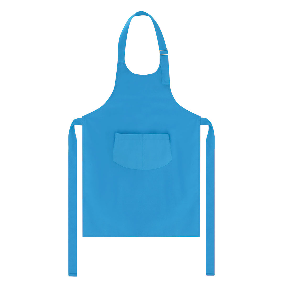 Delantal infantil de alta calidad fabricado en combinación de algodón y poliéster. Con práctico bolsillo doble frontal y cintas de cuello con ajustador cromado. De corte por debajo de la rodilla que proporciona una excelente cobertura.