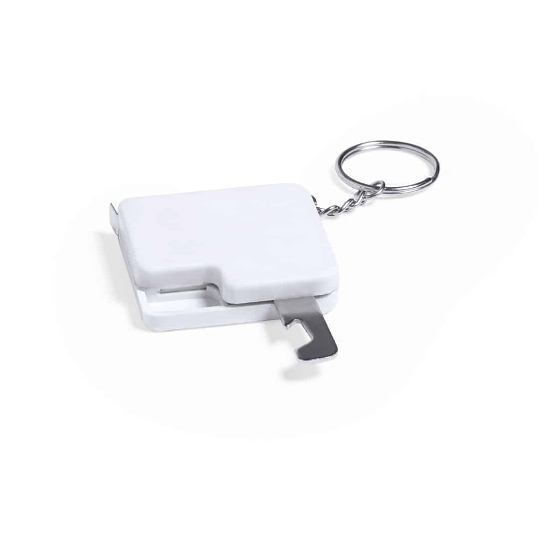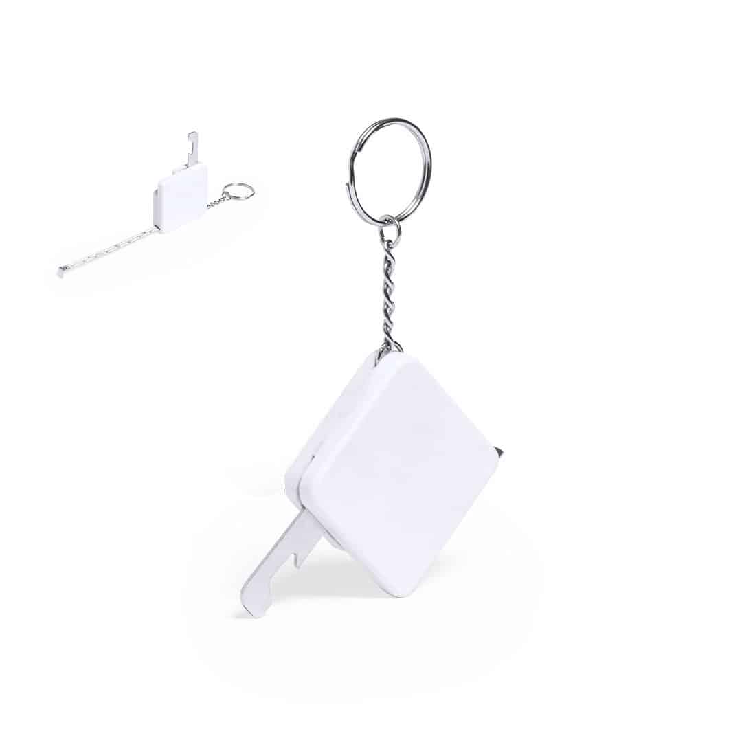Flexómetro 1 m en resistente ABS blanco, con abridor metálico integrado en cuerpo. Con amplia superficie de marcaje y anilla metálica cromada. Hoja con medidas en centímetros y pulgadas
