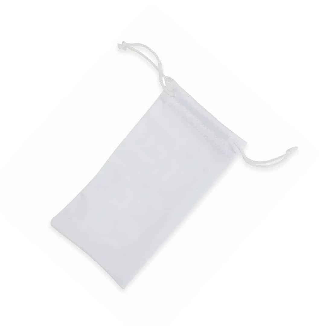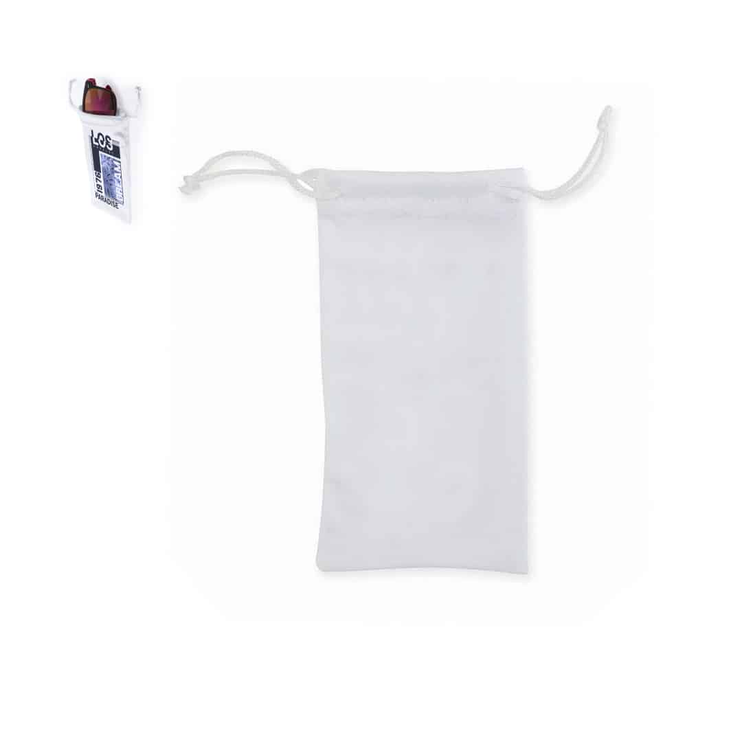 Funda de suave poliéster con cuerpo acabado en color blanco y cierre de cuerdas a juego. Especialmente diseñada para marcaje en sublimación.