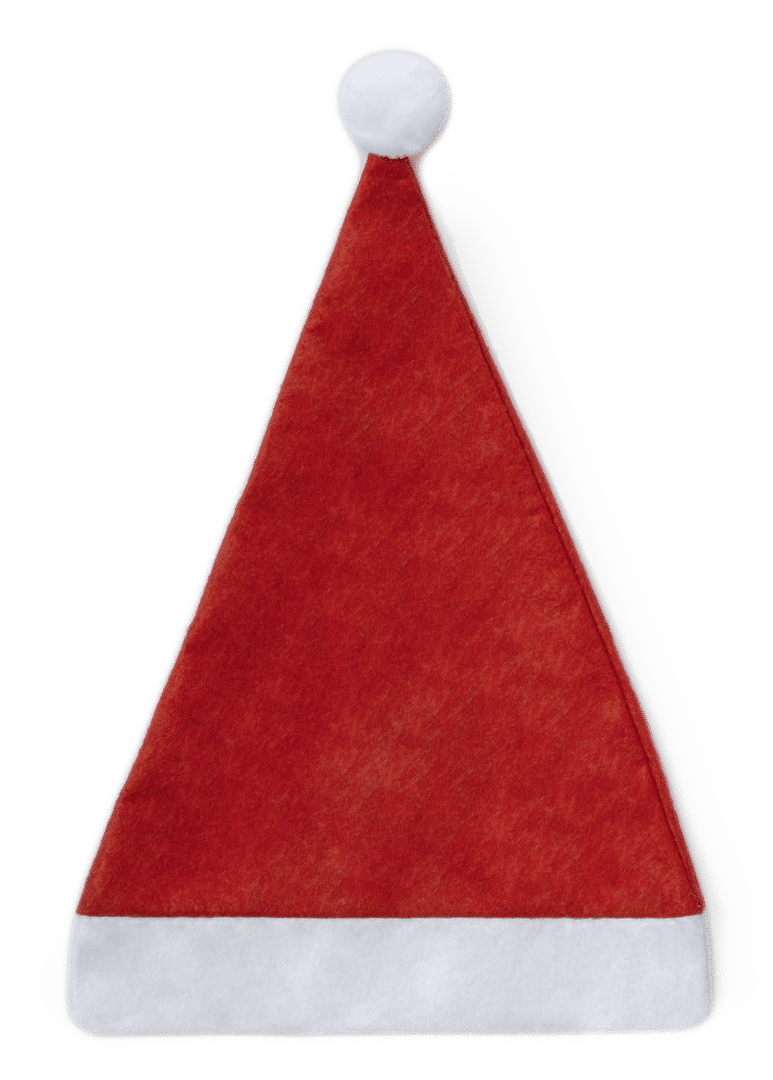 Gorro de Papá Noel para niños. Tira frontal y pom pom en color blanco.