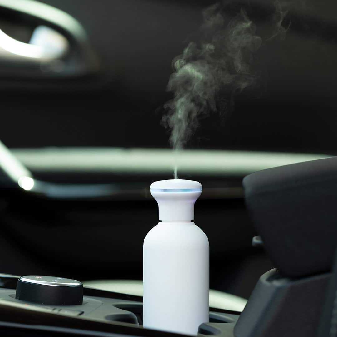 Elegante y decorativo humidificador con original diseño, disponible en acabado blanco y difuminado. Con suave tacto de goma y luz led blanca en el interior. 250ml de capacidad, con botón de encendido ON/OFF. Recomendado para uso en estancias de hasta 25m2, con 3 filtros de recambio y cable de alimentación USB (incluido). Presentado en bandeja protectora de PVC y en atractiva caja de diseño.