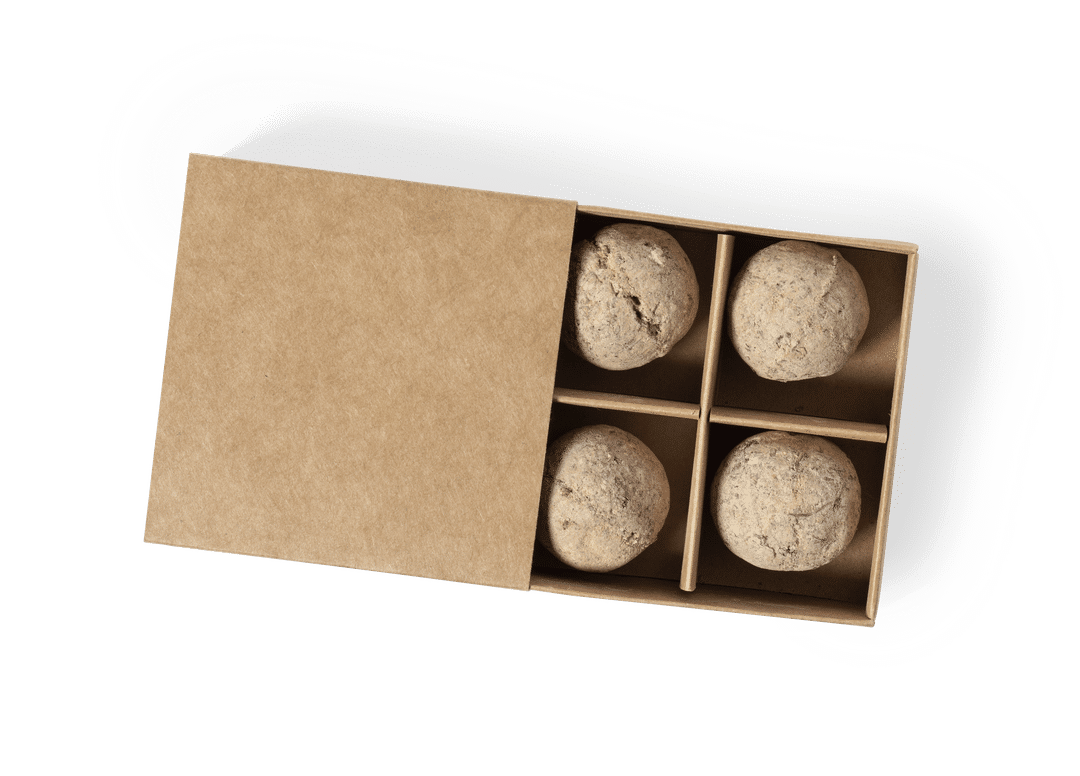 Kit huerto con semillas de tomate, albahaca, rúcula y manzanilla. Presentado en estuche de cartón reciclado con instruciones de plantado, distintivo Made in Europe y con 4 compartimentos independientes.