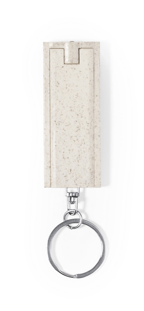 Llavero linterna de fabricado en caña de trigo y ABS.1 LED, con alimentación a pilas (de botón incluidas). Distintivo Wheat Straw y presentado en bolsa individual reciclada.Elaborado con elementos vegetales para así fomentar la utilización de materias primas naturales y reducir las emisiones contaminantes.