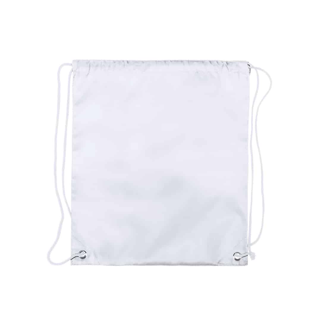 Mochila de cuerdas para niño en suave poliéster 210D de vivos colores. Con cuerdas autocierre en color negro y esquinas con argollas metálicas de refuerzo.