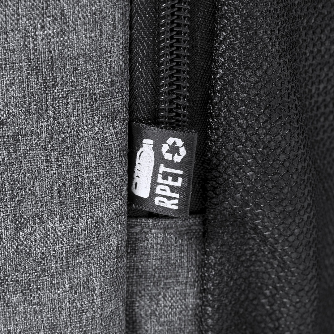 Mochila nevera 10L de línea nature, fabricada en resistente poliéster RPET 600D de alta calidad, elaborado a partir de plástico reciclado para así fomentar la reutilización de residuos plásticos y contribuir a la sostenibilidad del planeta. Compartimento principal con cierre de cremallera de doble tirador, con interior en PEVA. Con bolsillos laterales en redecilla y bolsillo frontal de acceso rápido con cierre de cremallera y tirador. Banda elástica en la parte superior, y en bolsillo en la parte trasera.Totalmente acolchada. Distintivo RPET en etiqueta.