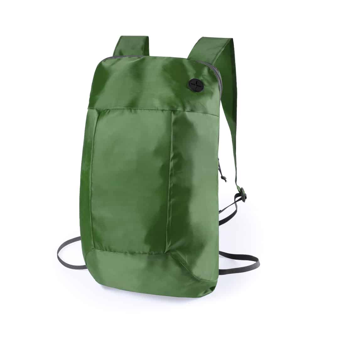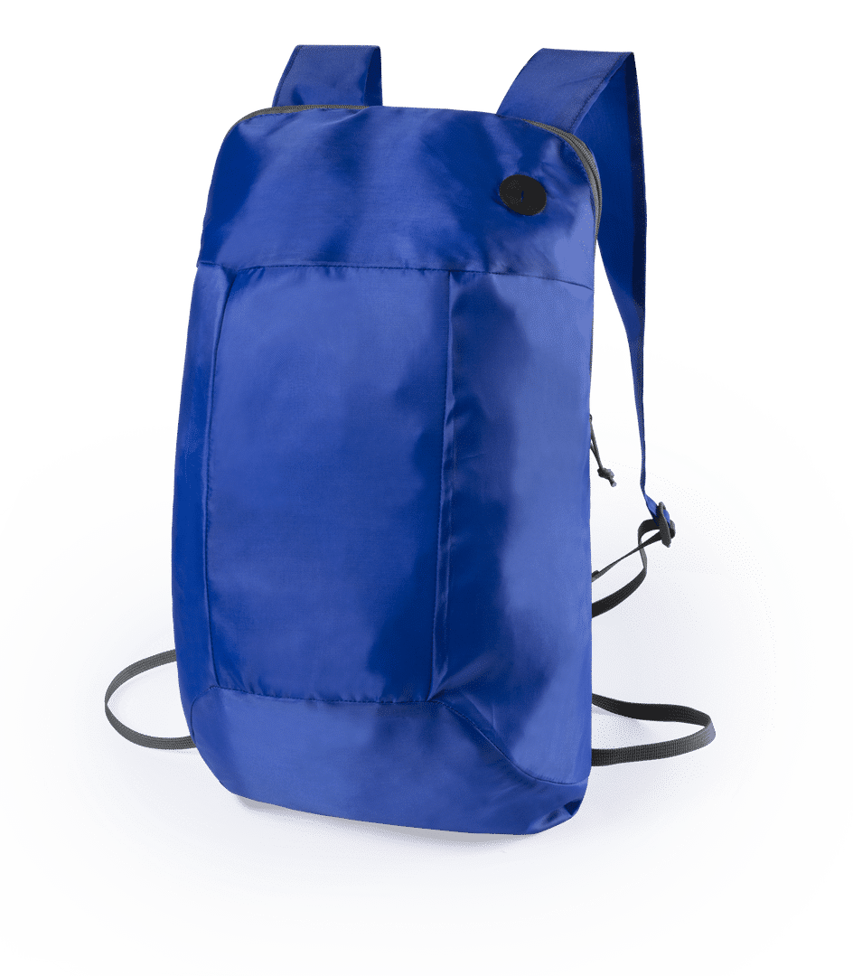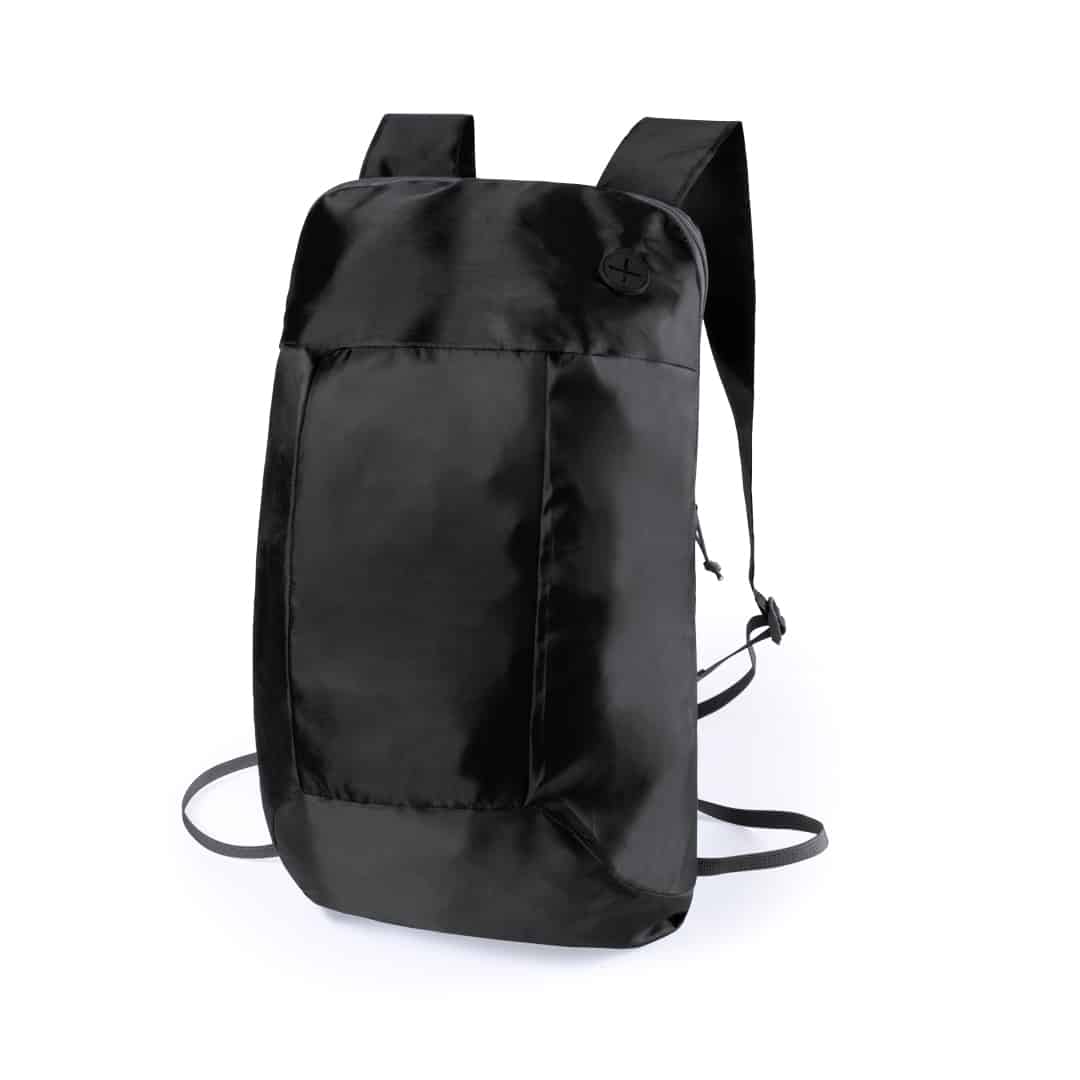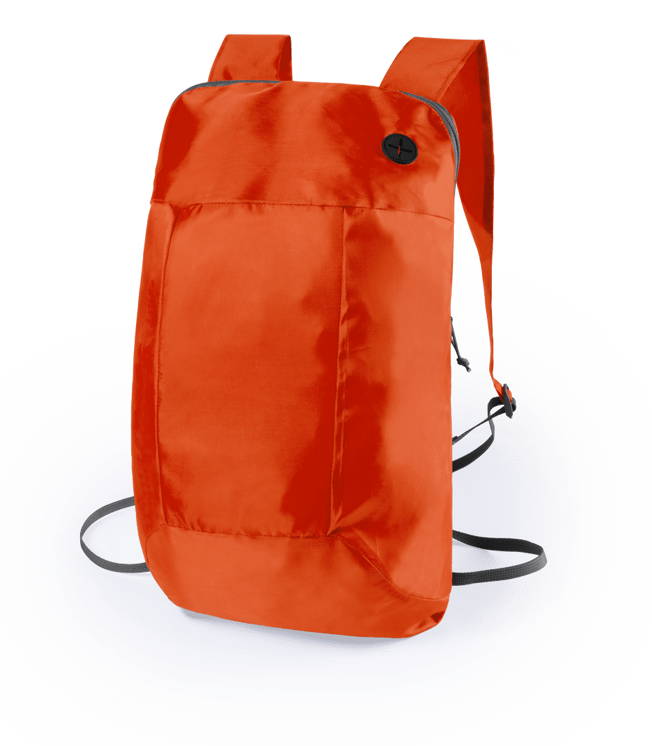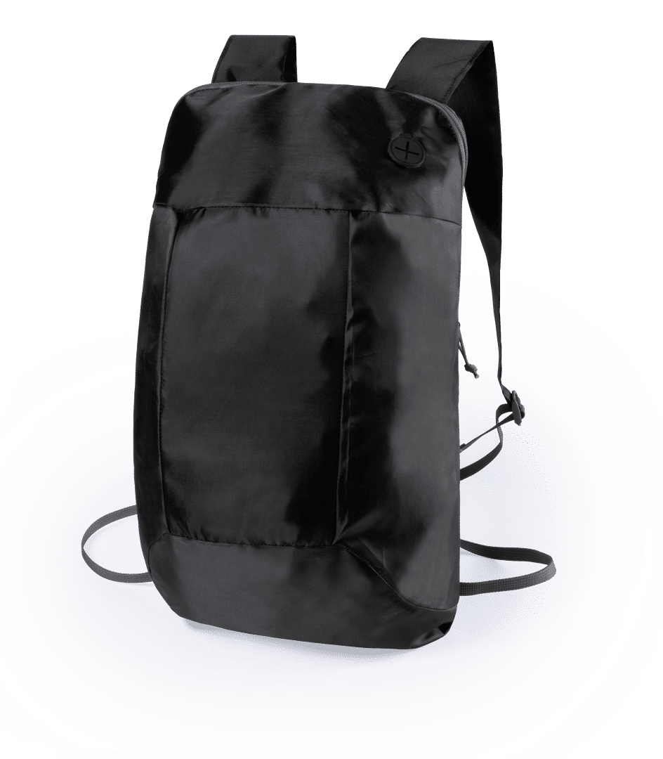 Mochila plegable en suave poliéster 210D de alegres colores, con cierre de cremallera y salida de auriculares. Con esquinas reforzadas, cintas de hombro regulables y accesorios en color negro. Plegado de pequeño tamaño.