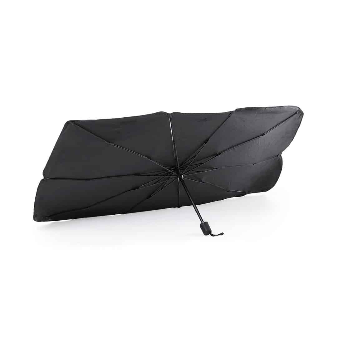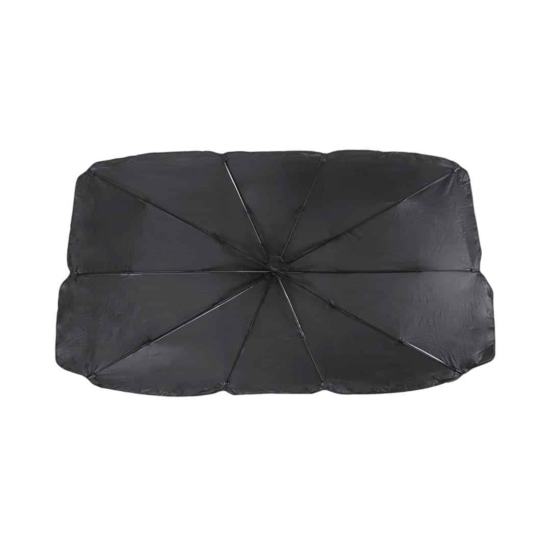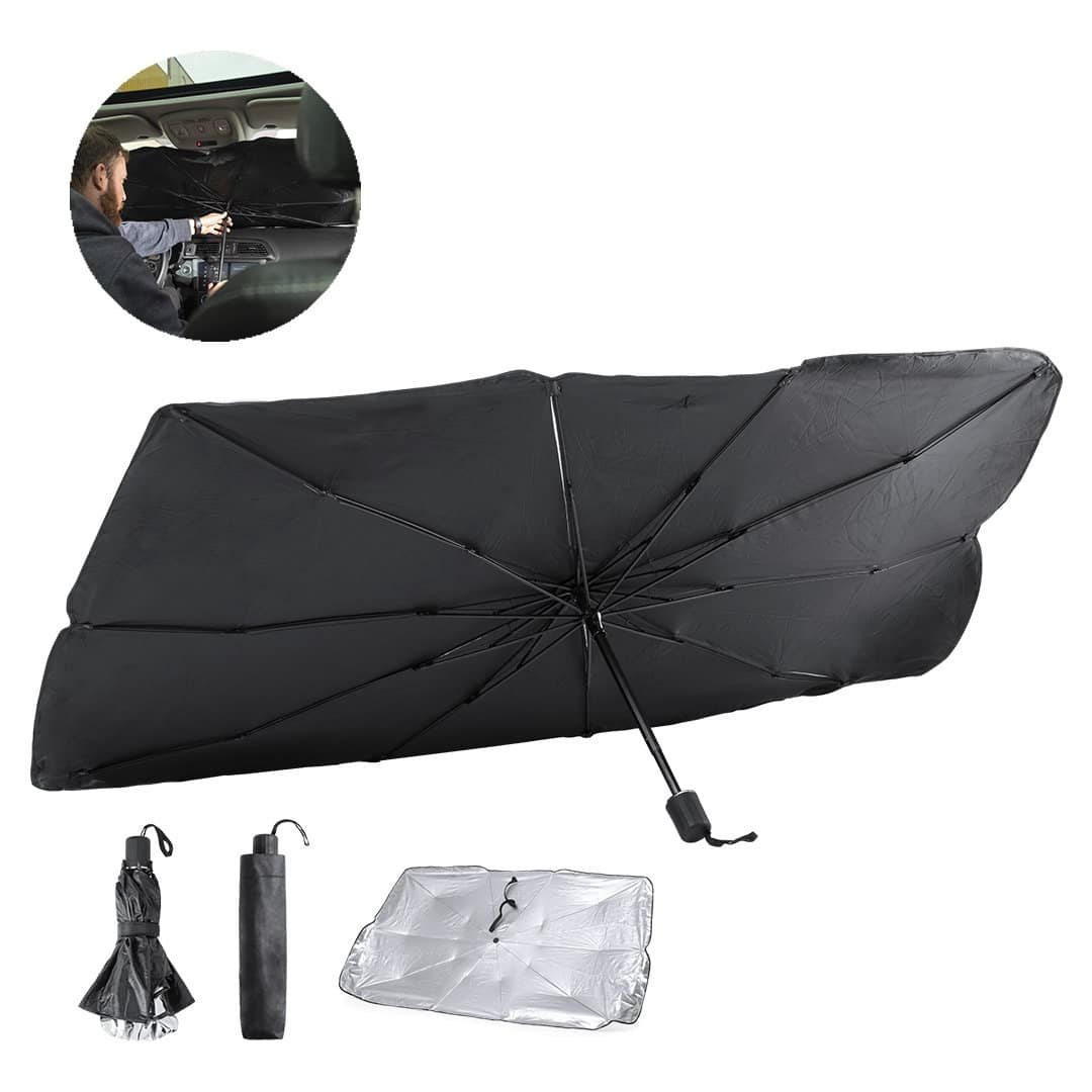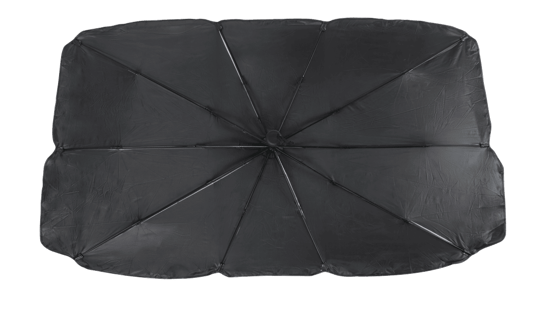 Parasol plegable para coche. Medida de 140x78cm. Con mecanismo de apertura manual y funda de políester incluida