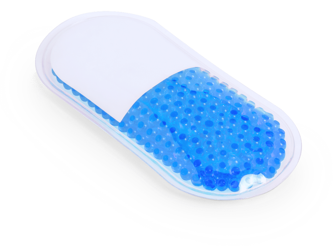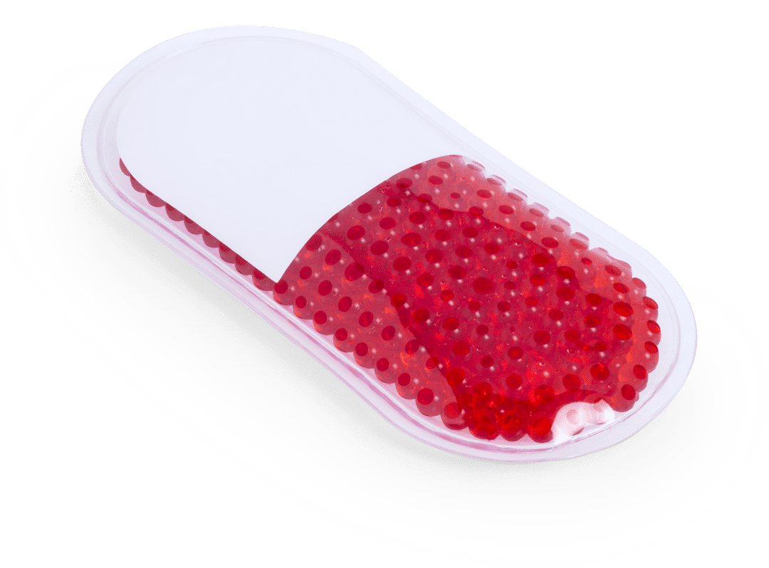 Parche térmico reutilizable con efecto frío y calor en variados colores y de duración prolongada. Para efecto calor, calentar agua en un recipiente con el parche dentro. Para efecto frío, meter el parche en el frigorífico o el congelador.