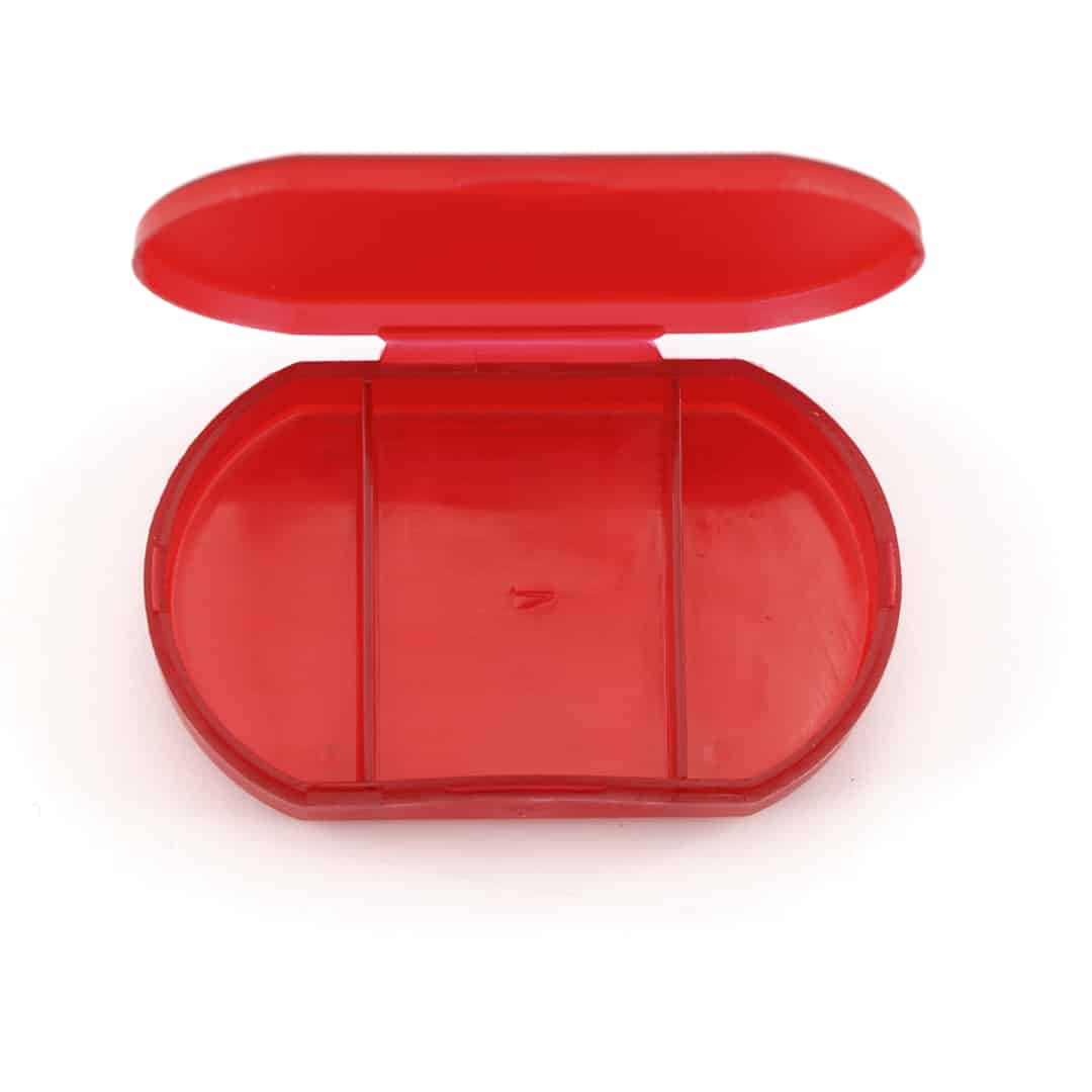Pastillero de cuerpo translúcido en vivos colores. con 3 compartimentos y cierre de seguridad.