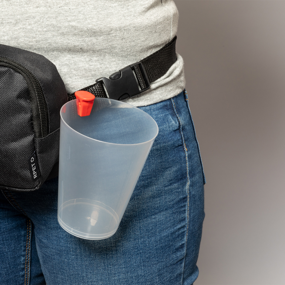 Práctica pinza portavasos fabricada en resistente ABS. Fácil de usar y adaptable a cualquier vaso. Con una superficie plana especial para personalización. Disponible en una variada gama de colores.