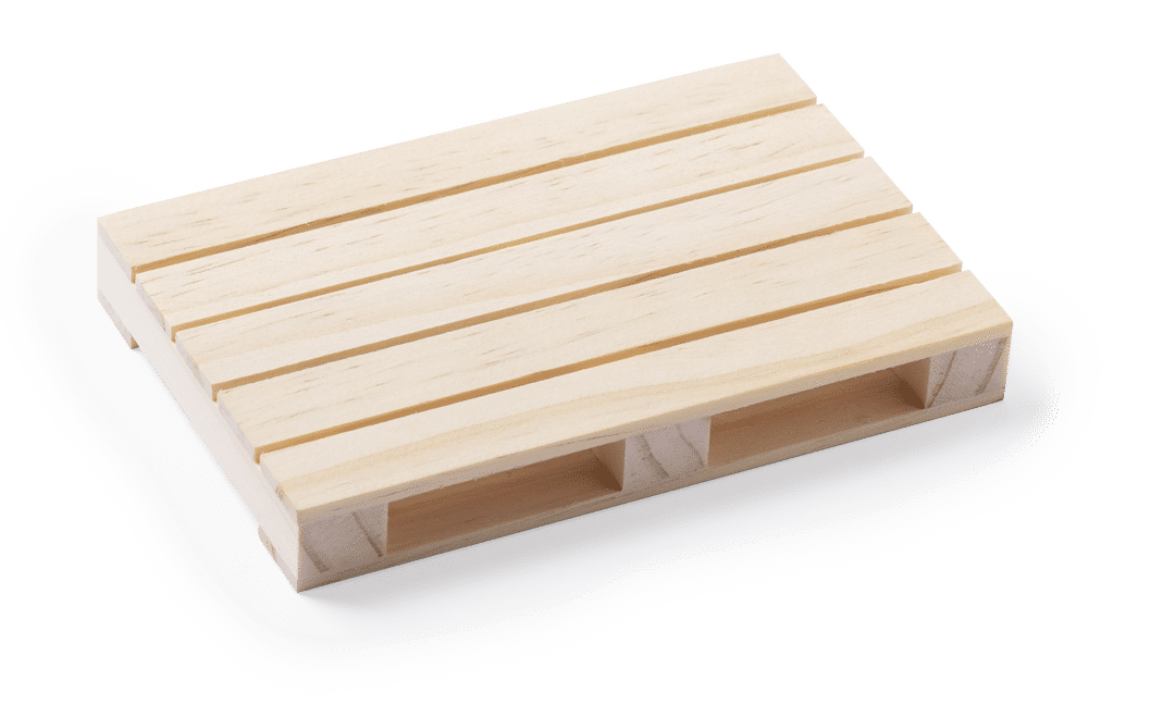 Original posavasos de línea nature con forma de palet y en madera natural.