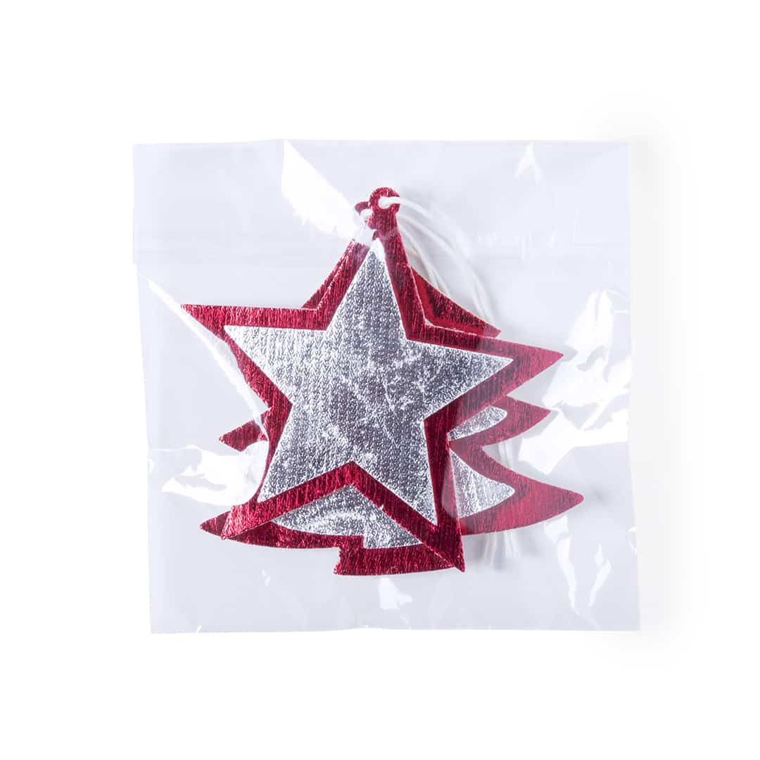 Set de figuras navideñas para colgar en material non-woven. Incluye árbol de navidad y estrella.