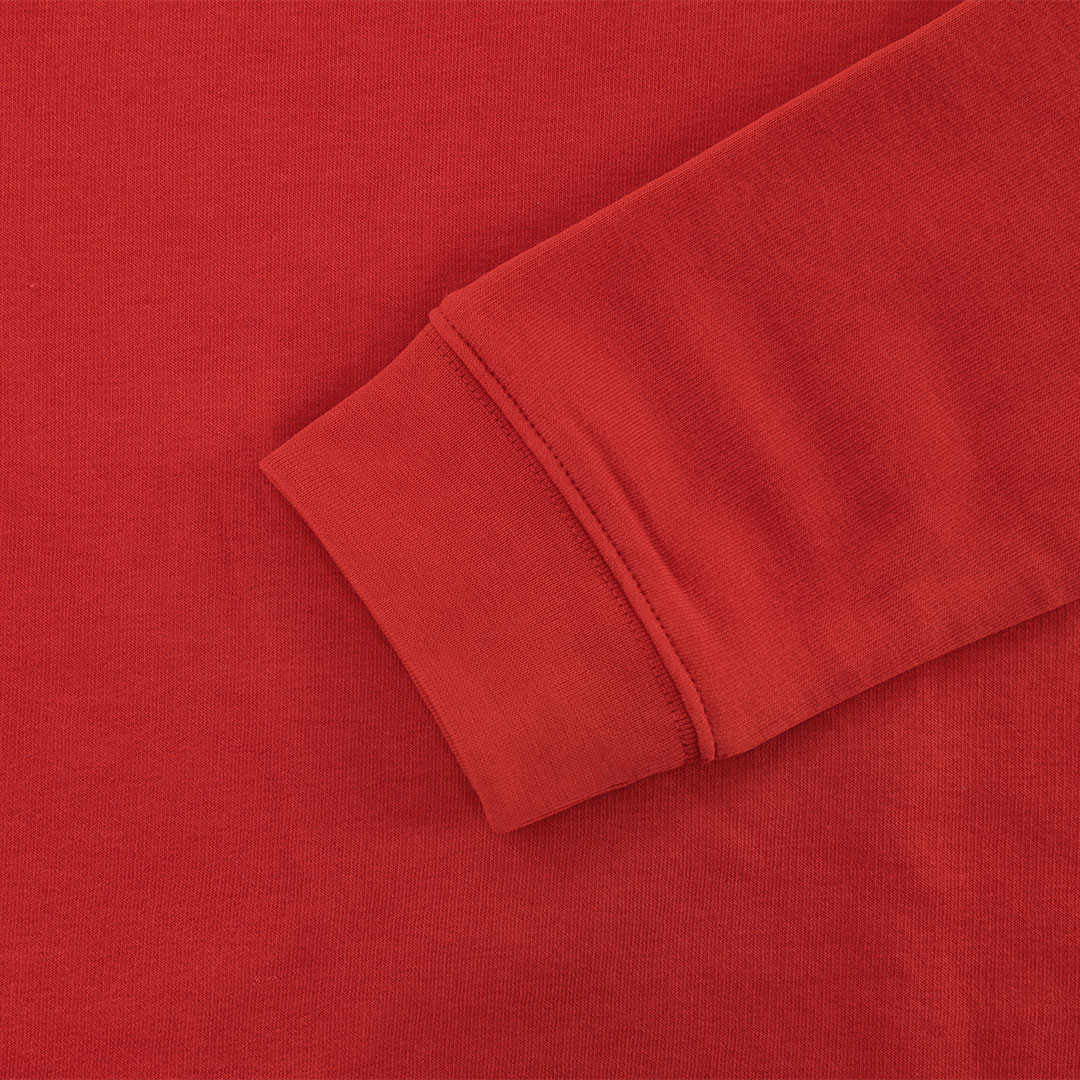 Sudadera infantil unisex en algodón y poliester en suave felpa perchada 280 g/m2. Con cuello redondo, puños y cinturilla en punto canalé 1×1 con elastano, que aporta mayor ajuste y confort. Cubrecosturas reforzado en el interior del cuello.