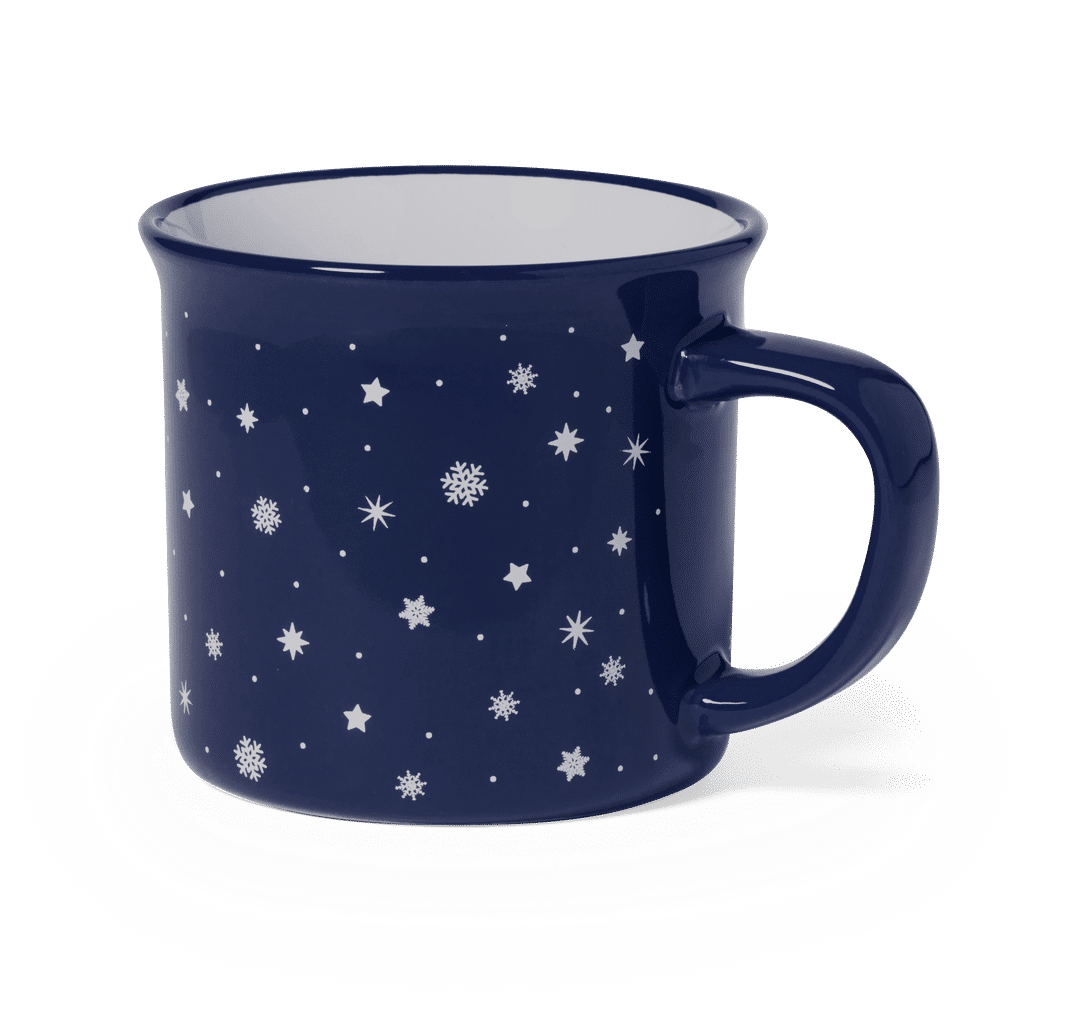Taza de cerámica con diseño navideño vintage y 280 ml de capacidad. Con área de marcaje especial en el frontal. Presentada en atractiva caja individual kraft.