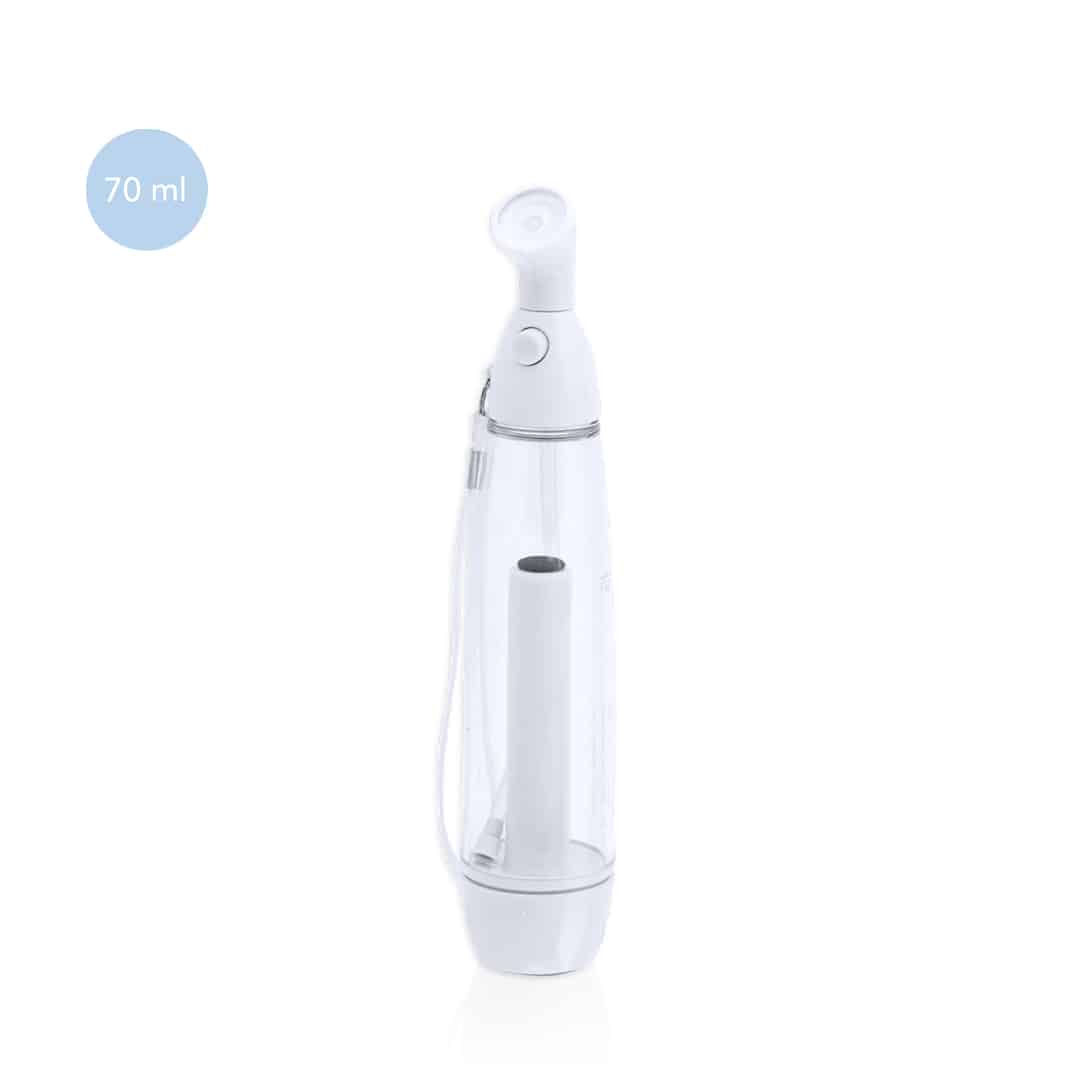 Vaporizador de 70ml de capacidad en variada gama de vivos colores. Con cuerpo en color transparente, cierre de seguridad a rosca y cinta de transporte a juego.