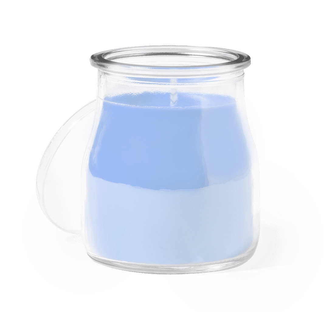 Vela aromática en tarro de cristal, disponible en aromas variados: blanco vainilla rojo frutas del bosque azul océano y verde musgo. Con distintivo Made In Europe.